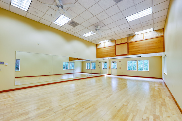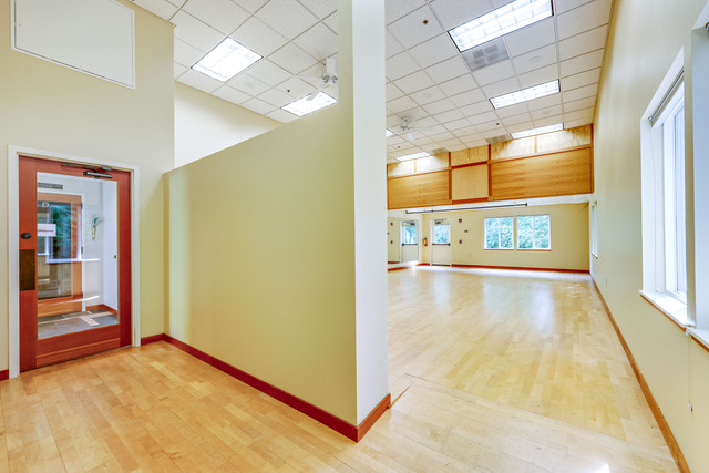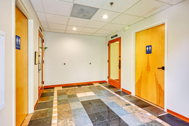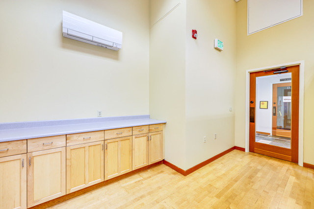 Originally built as a yoga studio, this unit has wooden floors, a semi-private entry/foyer and a mezzanine for additional storage or work space.